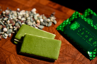 抹茶を活かす為にバターは控えめに使っており、脂肪分から来るコクを減らすと同時に、フワリとしたやや柔らかめの生地に仕上げているので抹茶との親和性が高まっています。